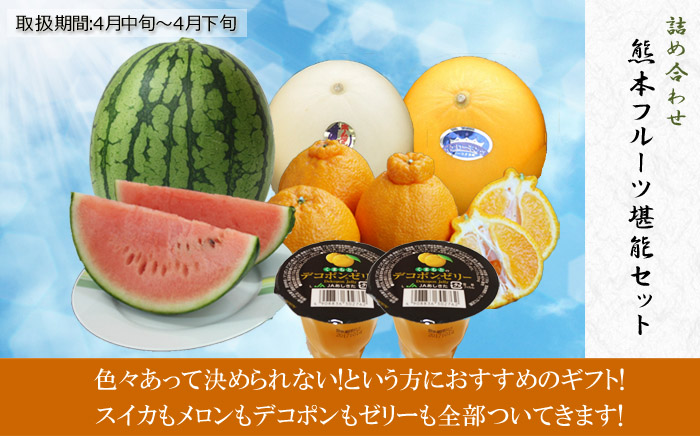 おいしさひとりじめの小玉スイカを始め、酸味が抜けて甘くておいしいデコポン、春の季節限定イエローキングとホームランの2種類のメロン、そしてゴロリとしたデコポンの果肉を贅沢に使ったゼリーなど、熊本県を代表する隠れた逸品をあれこれ食べ比べできるセットです。予算に応じてお選び頂けるよう、3種類ご用意いたしました。自分用に、ギフト用にいかがでしょうか?